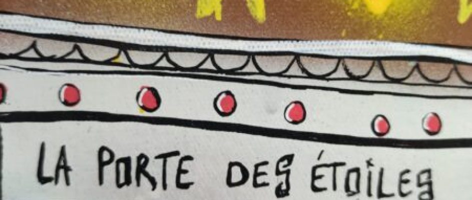 Panneau coloré avec texte "La Porte des Étoiles".