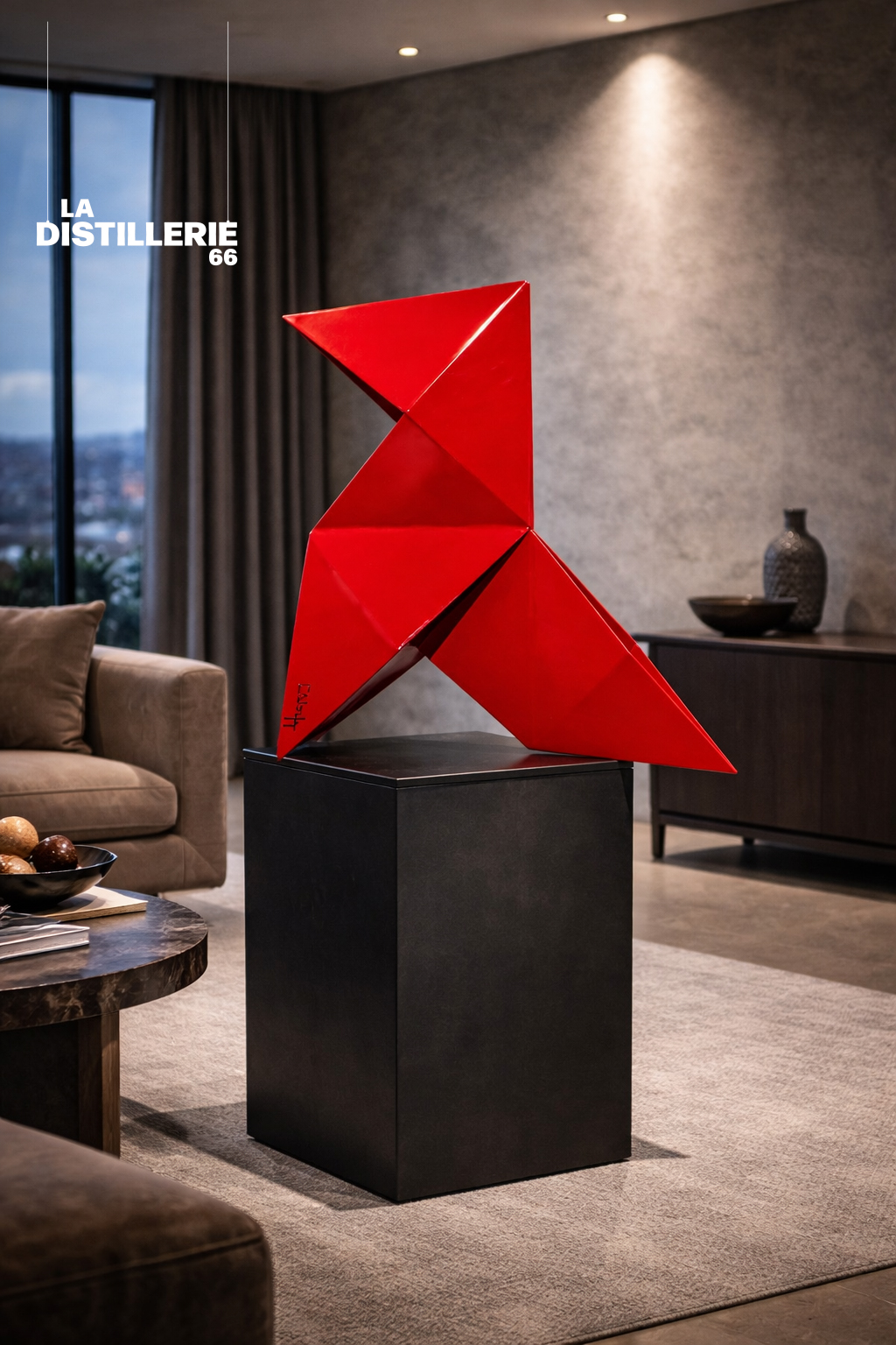 Pensée pour des collectionneurs exigeants et des espaces architecturés, cette sculpture s’inscrit dans une écriture contemporaine claire, où la légèreté du papier est remplacée par la permanence du métal.