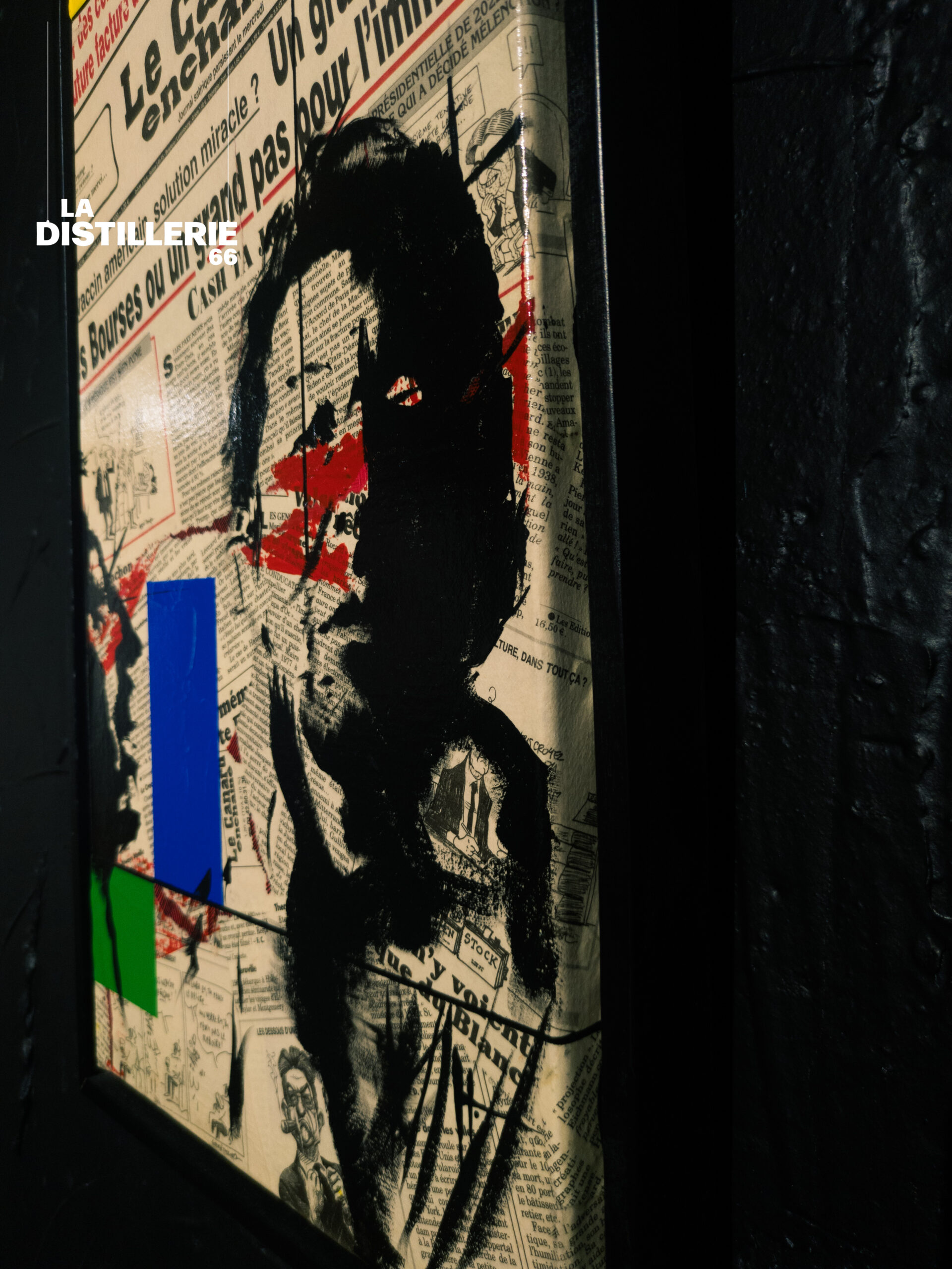 Gainsbourg s’inscrit dans le travail de Hayat, où le collage de presse devient un matériau narratif au croisement de l’histoire, de l’icône et du geste pictural.