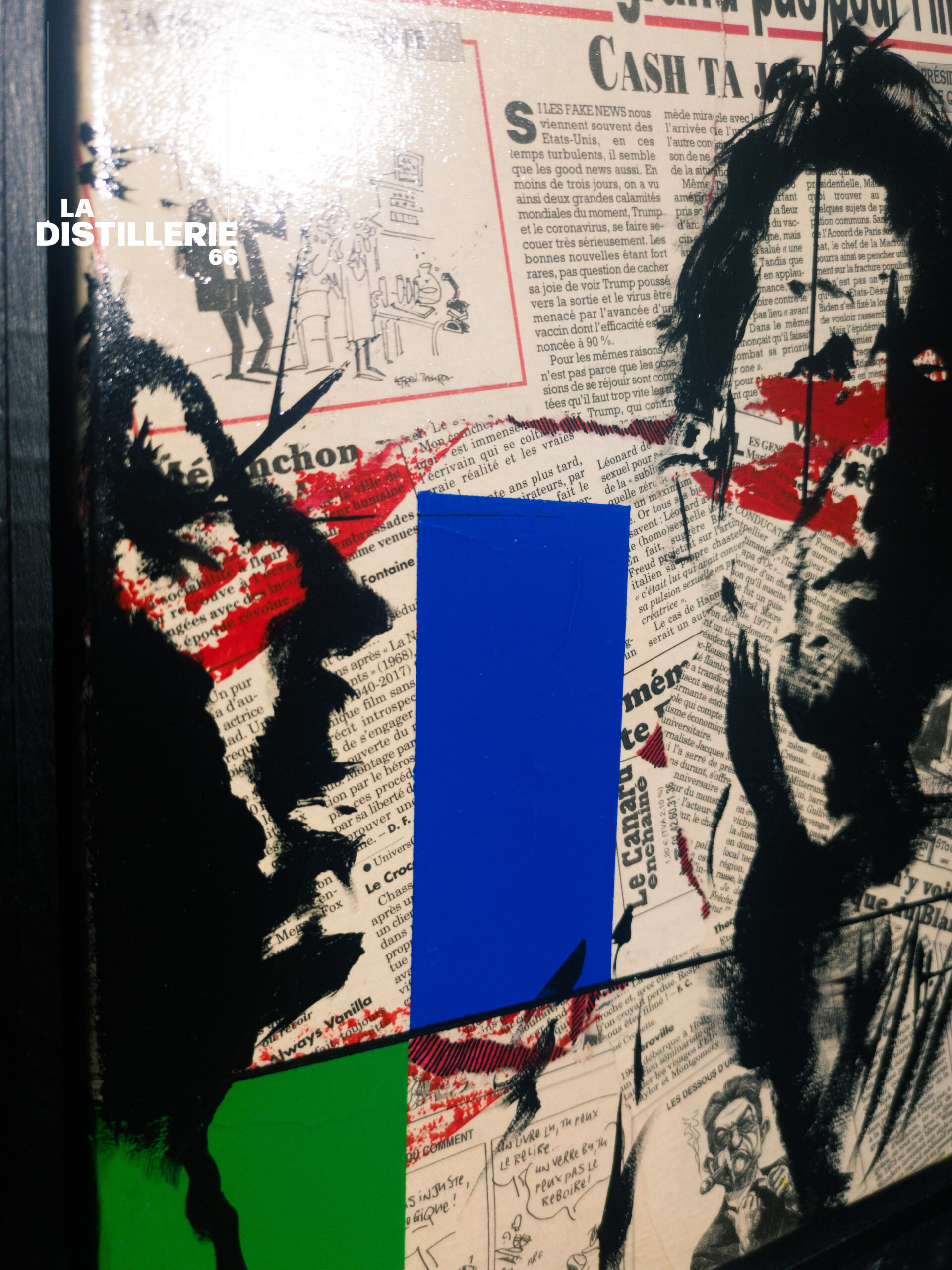 En associant journaux et peinture, l’œuvre construit une image stratifiée, pensée pour des collections privées ou des espaces professionnels sensibles aux démarches contemporaines mêlant mémoire collective et écriture artistique.